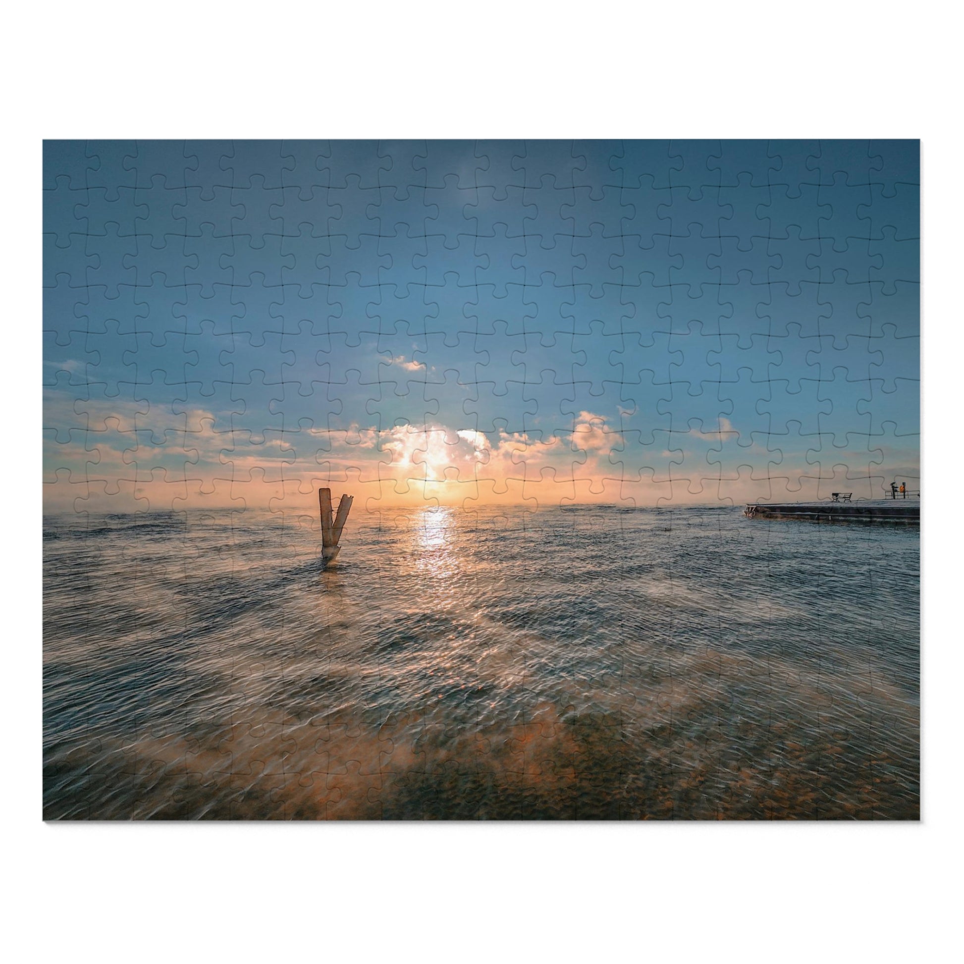 Transport yourself into a dreamlike realm with this captivating puzzle featuring a sunrise over the St. Clair River. Delicate tendrils of fog gracefully dance atop the tranquil water, adding an enchanting touch to the scene. The soft morning light bathes the landscape, creating a mesmerizing tableau that captures the essence of dawn. Immerse yourself in the beauty of nature as you piece together this puzzle, where each fragment unveils the serene magic of a misty sunrise. Limited edition – bring the mystique of fog-kissed mornings into your home.